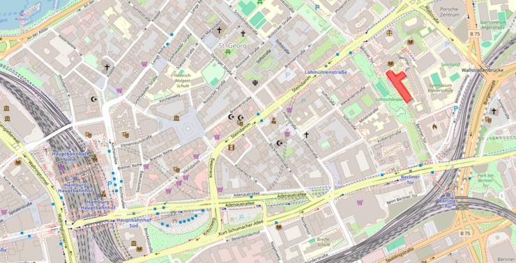 - Berliner Tor einbiegen bis Hochschule zu sehen ist